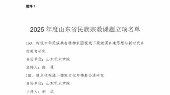 近日,山东省民族宗教事务委员会发布《关于公布2025年山东省民族宗教课题立项的通知》,熊猫体育胡斌博士主持申报的《情本体视域下儒家文化与佛教会通研究》获批立项。